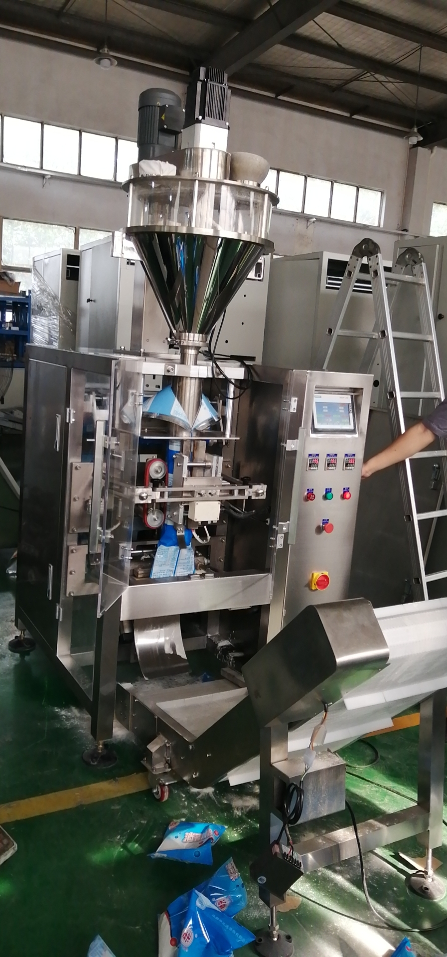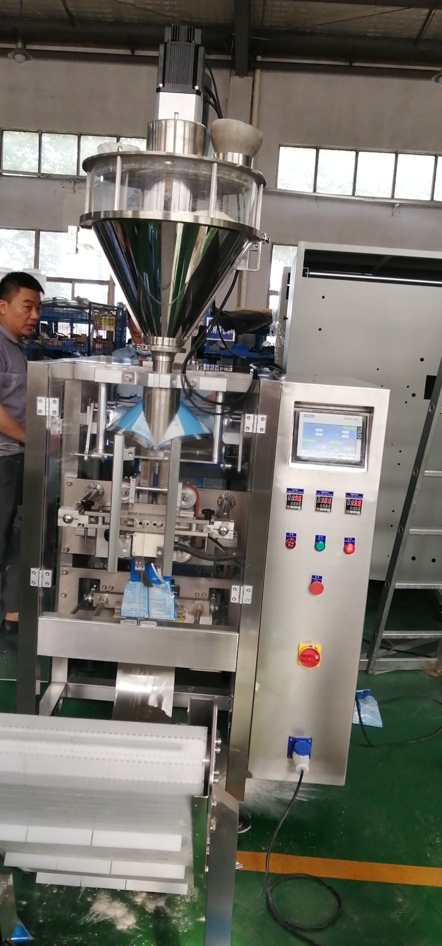 ◆ 包装机采用间歇式运转机构,包装成品美观、平整度高。且对包装卷材适用范围广泛。采用直螺杆下料方式,有效避免了粉末物料在自由落体时所产生的粉尘附着在包装封口处,从而达到更好的封合效果。