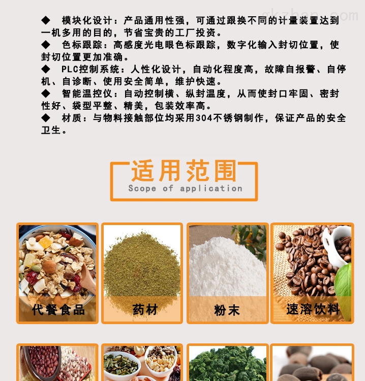 这款中药粉末立式包装机主要用于医药类产品的小剂量包装,该机采用优质不锈钢,确保工作过程中物料无污染,机器清洁方便,完全满足药品GMP和食品QS质量安全认证的要求。并且该机配置有稳定可靠的双轴高精度输出的PLC控制器,定量下料、制袋、充填、计数、封合、分切、输出成品、贴标签、打印一次性完成。