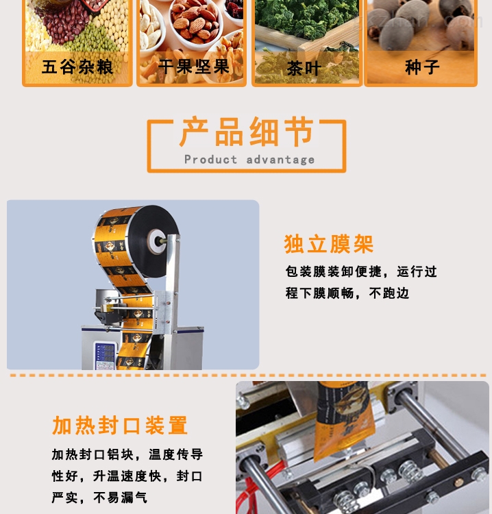 ◆ 中药粉末立式包装机采用外置式放膜机构,包装膜安装更简单,更容易。