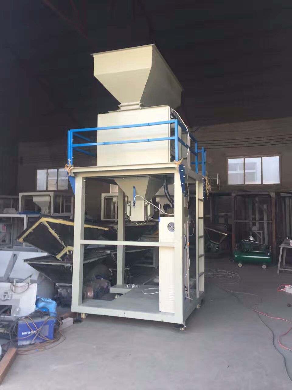 食品包装秤/电子秤/颗粒自动包装秤厂家上海铸衡工厂生产的这台食品包装秤是我公司开发研制的新一代智能包装秤,适用于各种流动性较好的颗粒状物料。如:肥料、化工、种子、饲料等松散颗粒物料的计量包装以及包装后的缝包工艺。包装秤具有结构合理、造型美观、运行平稳、无需包装动力,节能省电,操作方便,称重准确等特点。该包装秤是集灌装、计量、封口、包装、输送为一体的包装机组。