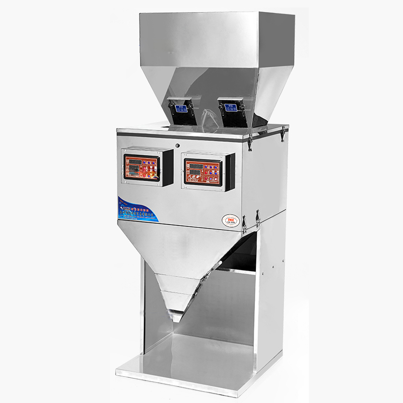 上海铸衡工厂生产的这台颗粒分装机专为分装颗粒粉末物料研发生产,采用微电脑智能控制下料,精度更高,速度更快,性能可靠,全不锈钢密封机体,具有防腐、防尘之功效,分装机由料斗、振动送料器、称量器、称斗、开门机构等组成。
