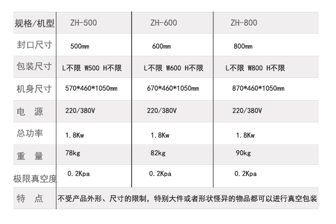 ◆ 真空包装机动作由大功率的減速电机提供,性能稳定,封口压力大,彻底改变包裝封口不牢的现象。