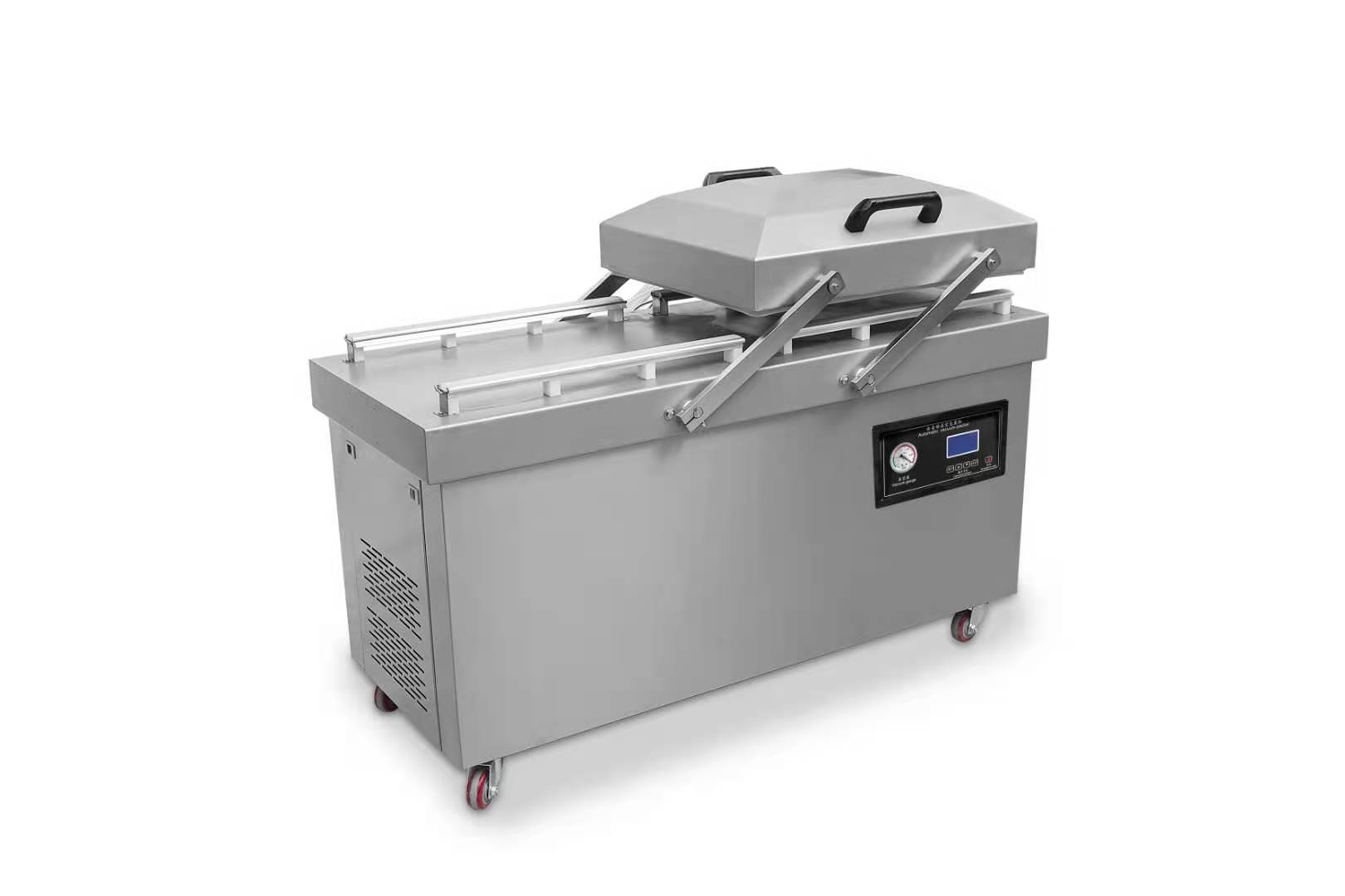 1、双室真空包装机采用微电脑控制系统,使包装参数设定更准确,操作简单方便。操作者可以根据需要设定抽真空时间和包装封口时间,以适应不同规格、材质的包装。