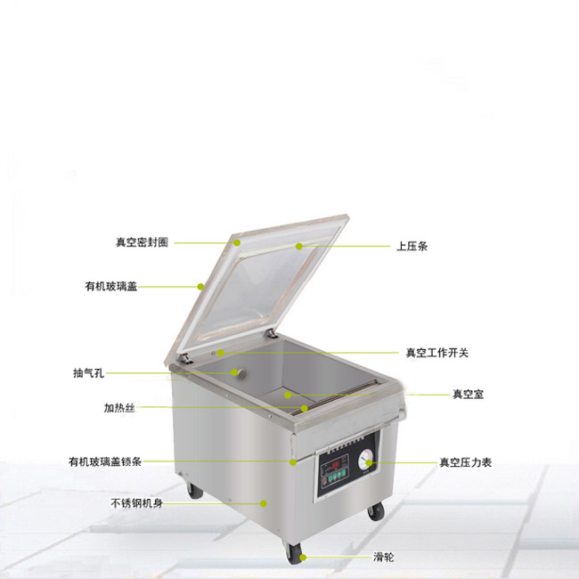 5.台式真空包装机使用不锈钢材料制作,防腐防潮,可以适应比较差的生产环境;保证了机械的美观性,延长了机械的使用寿命。