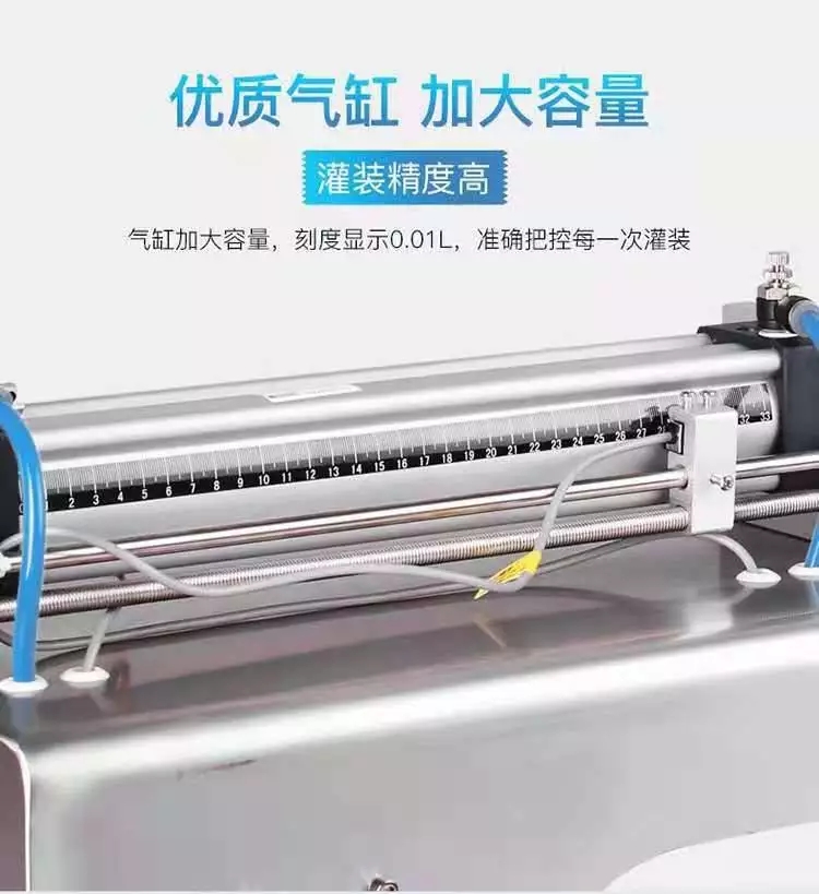 2、2、由于采用气动控制,并采用机械定位,所以灌装精度高,精度可以控制在±1%